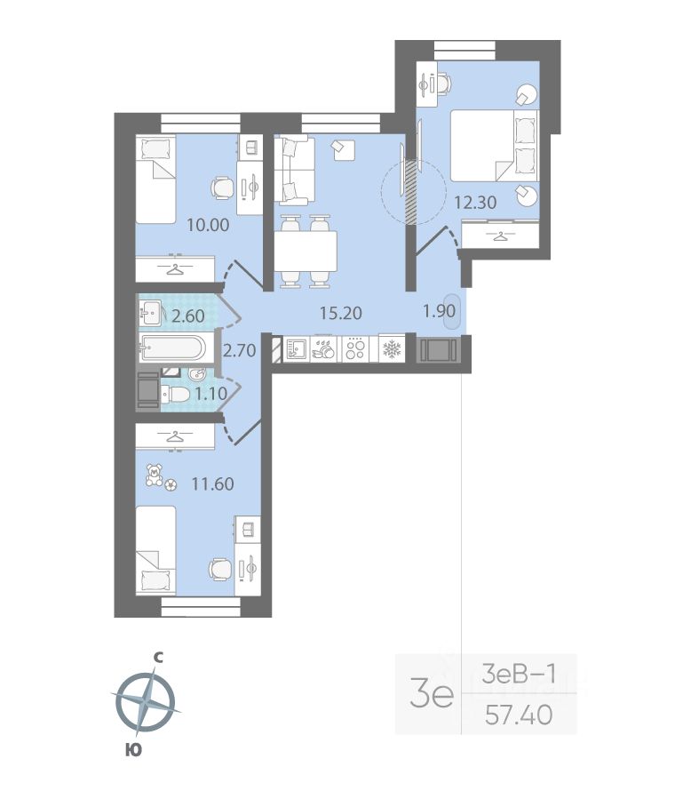 Продается 3-комнатная квартира в ЖК "Цветной город" на 2 этаже. Общая площадь составляет 57.40 кв. м. Квартира с чистовой отделкой  Срок сдачи дома: 4 квартал 2025. Жилой комплекс "Цветной город" располагается по адресу Санкт-Петербург, Красногвардейский.