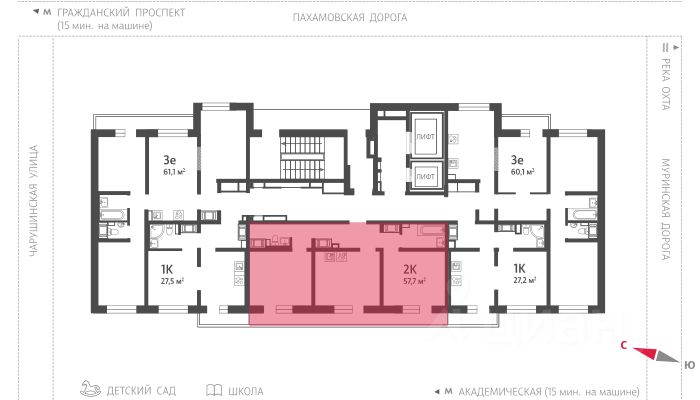 • 15 минут на авто до станций "Гражданский проспект" и "Академическая";