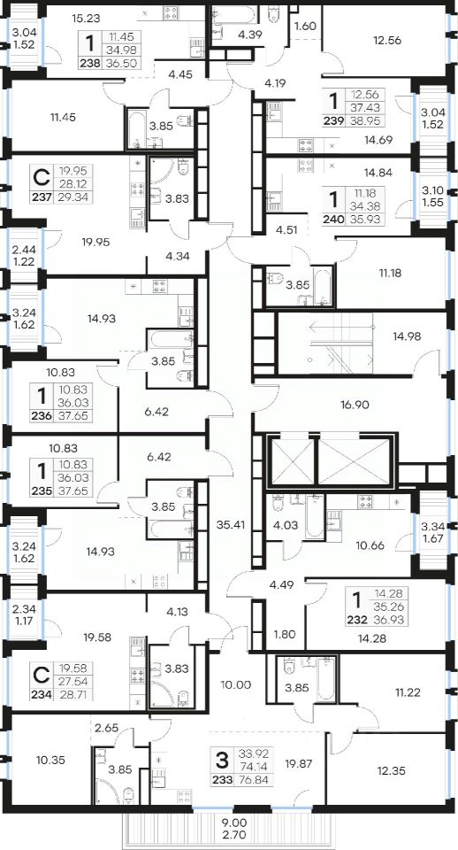 Продается квартира-студия на 11-м этаже в проекте комфорт-класса GloraX Парголово. Общая площадь лота составляет 29,34 кв. м, из которых 19,95 кв. м отведено под жилую и кв. м под кухонную зону. Номер квартиры - 237.