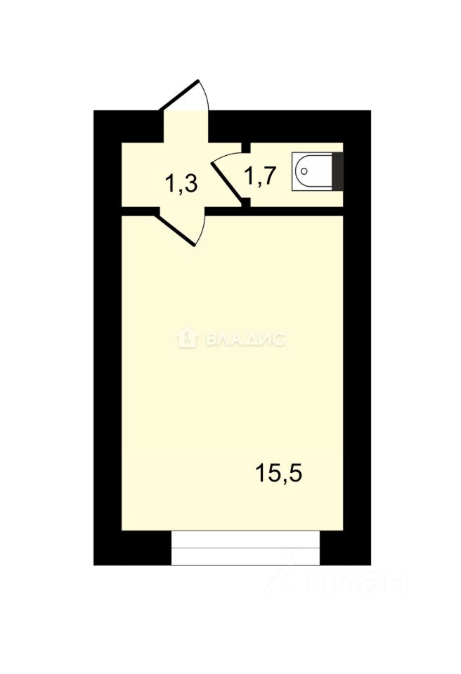 Студия имеет не угловое расположение, что может быть важно при выборе жилья. Санузел раздельный, балконов и лоджий нет.