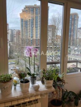 С балкона открывается вид во двор, где тихо и спокойно, балкон остеклен, теплый. Второй балкон французский. Высокие широкие окна в комнатах и кухне. Вся встроенная мебель останется новому собственнику: кухня, гардеробная, прихожая.