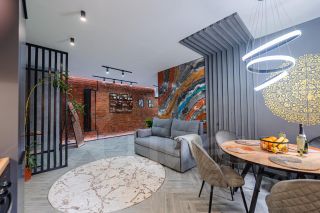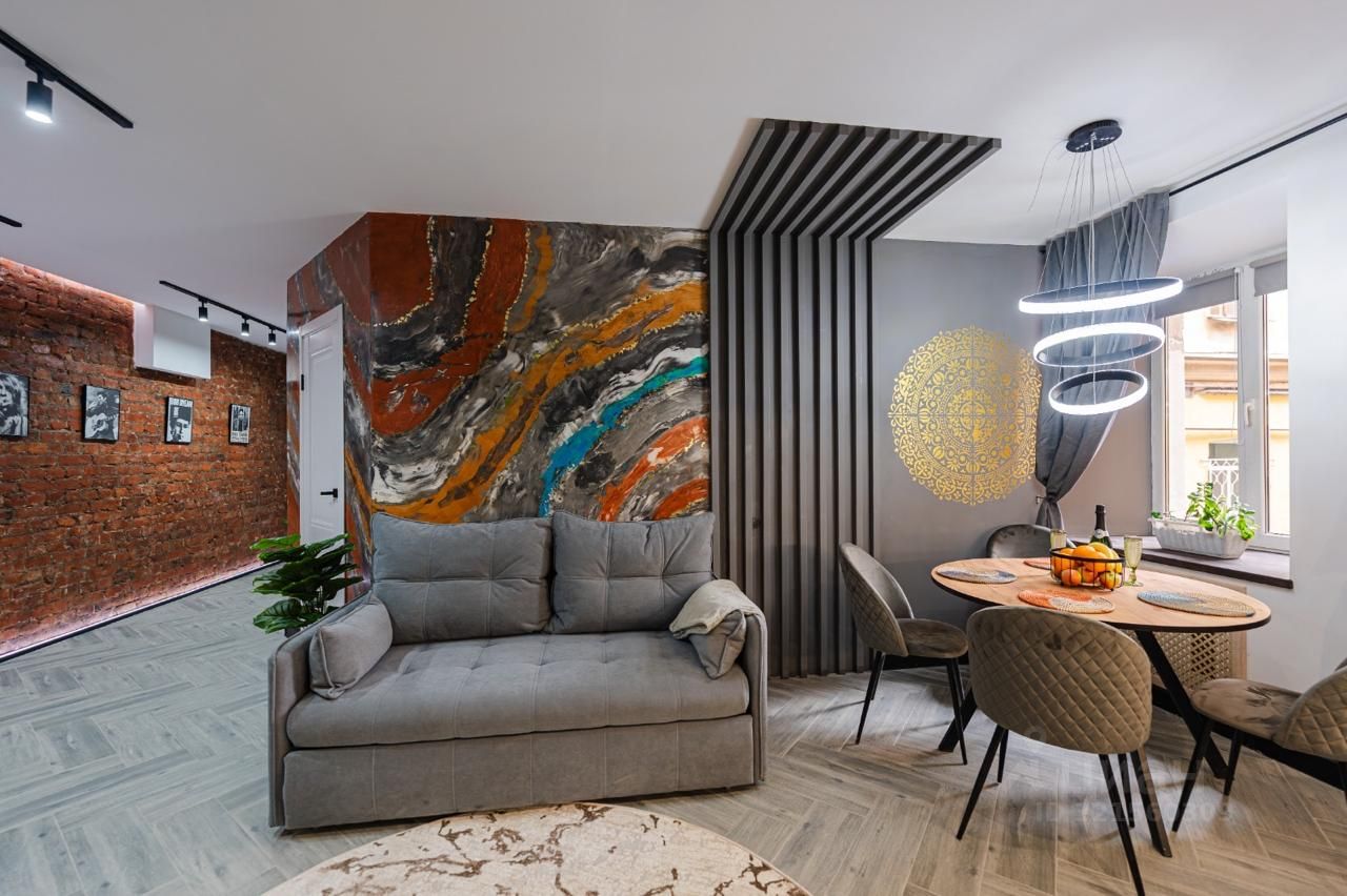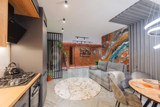 Качественный супер-дизайнерский ремонт. Очень много арт-объектов в стиле Лофт.