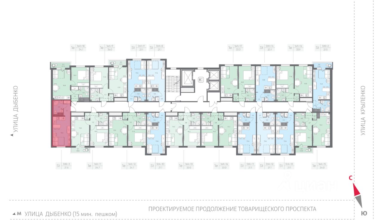 Продается студия в ЖК "Дыбенко Парк" на 4 этаже. Общая площадь составляет 21.50 кв. м. Квартира с чистовой отделкой. Жилой комплекс располагается по адресу Санкт-Петербург, проспект Товарищеский.
