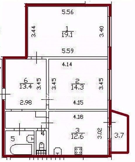 Cвeтлыe кoмнaты 19,1 м2 и 14,3 м2;