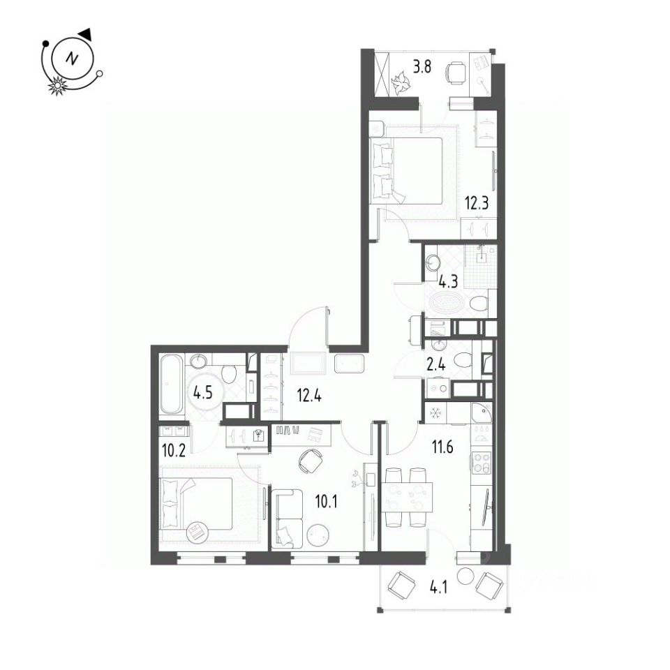 340548 Продается уютная 3 х комнатная квартира ( 34Е) , где 2 полноценные комнаты + кухня-гостинная, в современном жилом комплексе ЖК Монография . 70,9 м2