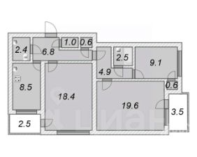 Комнаты изолированные - 19,6+18,4+9,1 кв.м.
