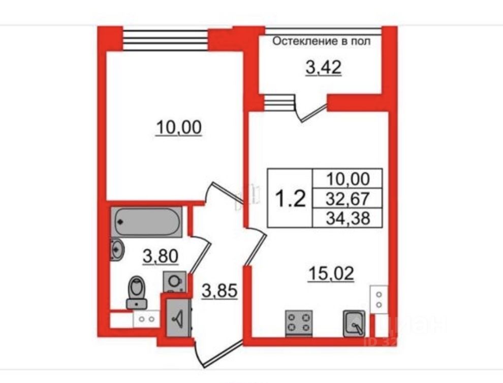 Площадь: 32,7 м² | Этаж 5/12 | Сдача III кв. 2026
