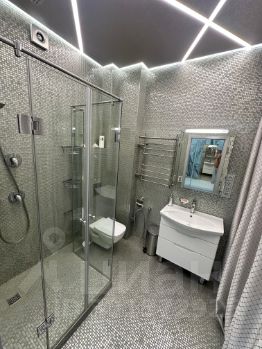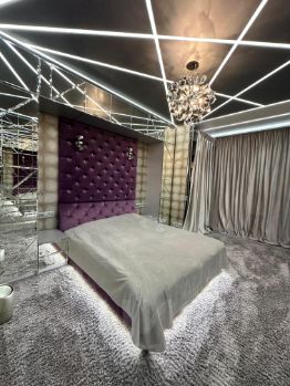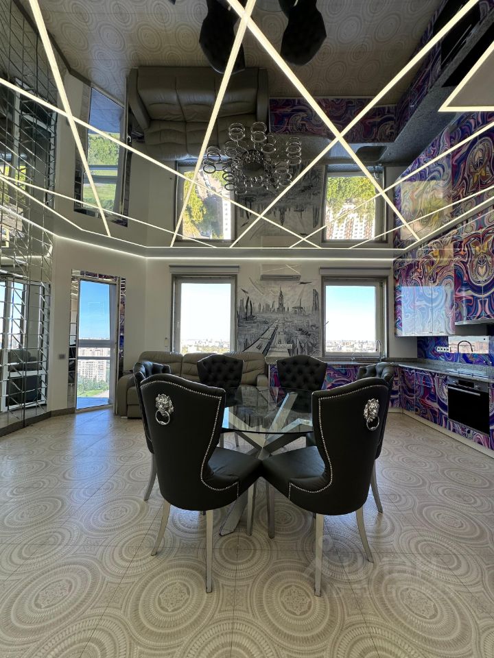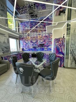 В квартире имеется 3 спальни и рабочий кабинет, 3 САНУЗЛА, просторная ванна с гидро-, аэромассажем и подсветкой. В гостиной известной художественной студией выполнена эксклюзивная роспись стен с люминесцентной контурной штриховкой , которая завораживающе светится в темное время суток. Столешница кухни выполнена из натурального камня. Из окон открываются умопомрачительные виды на панораму города. Мебель (с электроприводом спальных мест) Mobel Zeit из бразильской натуральной кожи, бытовая техника Miele, телевизор LG OLED 77 дюймов, Вся мебель и техника остаётся в квартире.