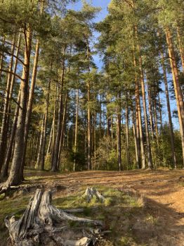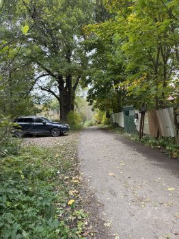 старинный парк с дорожками, много дубов, лиственниц, грибов типа трюфель.