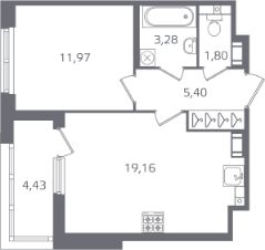 43,83 м²