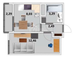 Квартира расположена на 8-м этаже 18-этажного дома, построенного в 2022 году. Здесь вас порадует современный ремонт, высокие потолки (2,8 м). Общая площадь квартиры составляет 25,8 кв. м, из которых 13 кв. м — жилая площадь, 8 кв. м — кухня.