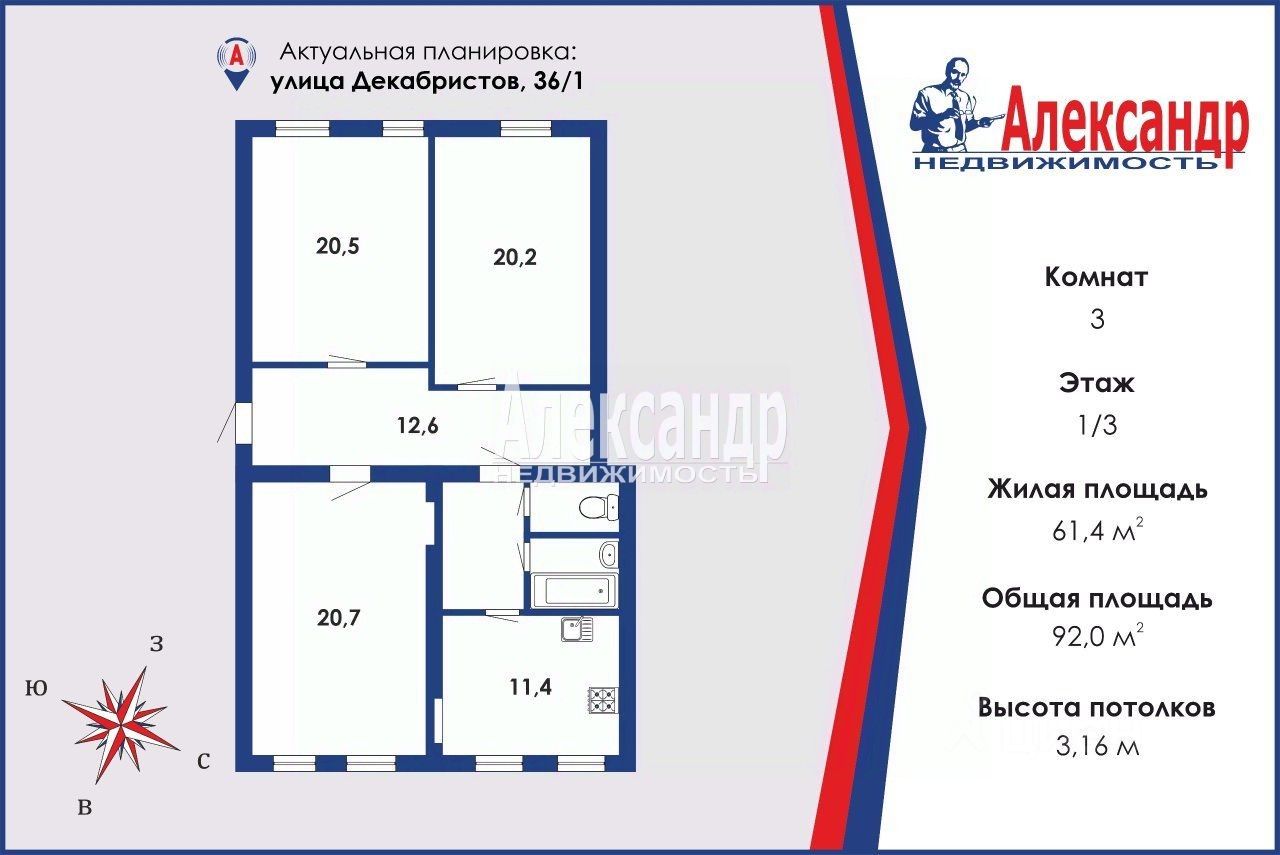 В квартире 3 изолированные комнаты примерно одинаковых по площади = 20,2 кв.м+20,5 квм.+20,7 кв.м. Потолки высокие 3,16 м. В комнатах и кухне поменяны батареи отопления. Санузел раздельный. Кухня 11,4 кв.м. Квартира двухсторонняя, на всех окнах установлены решетки. Почти в каждой комнате и кухне по 2 больших окна. Окна кухни выходят на Минский переулок.