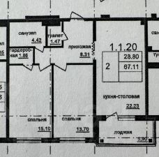 жилая площадь 28,8 м² (комнаты: 15,10м² + 13,7м²)
