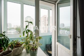 Окна выходят на две стороны кирпичного дома, балкон и лоджия, через дорогу от дома - станция метро, автобусная и троллейбусная остановки.