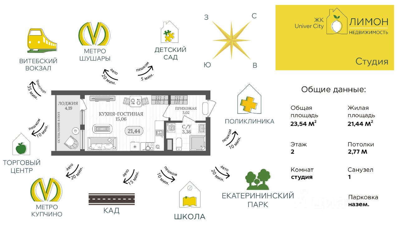 Продаётся студия 23,54 м² в ЖК Универ Сити от Setl Group, Санкт-Петербург