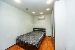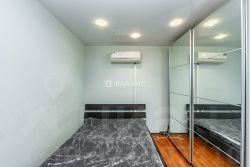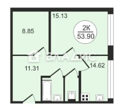 Просторная  квартира общей площадью 53,9 м2. Огромная комната разделена на 2 части так, что образуется изолированное спальное место.