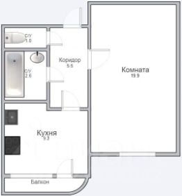 Квартира находится на 3-м этаже из 9 этажей. Общая площадь 38,3 м2. Жилая 19,9 м2. Кухня 9.3 м2 квадратная с выходом на балкон. Плита электрическая. Просторная комната правильной геометрической формы с высотой потолков 2,70 м. Санузел раздельный. Поперечная ванна 1,70 м, позволяющая установить стиральную машину. Тамбур на две квартиры. Вид из окна на зеленый палисадник и  школу.
