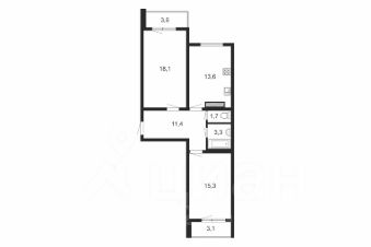 В квартире большие комнаты 18.1 м. и 15.3м.