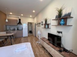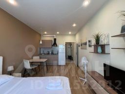 В апартаментах выполнен качественный ремонт, который создаёт атмосферу уюта и комфорта. Высокие потолки 2,8 метра добавляют пространству воздушности. Студия оснащена всем необходимым для комфортной жизни: совмещённый санузел, есть посудомойка и вся необходимая техника и мебель, окна с видом на Лахта центр.