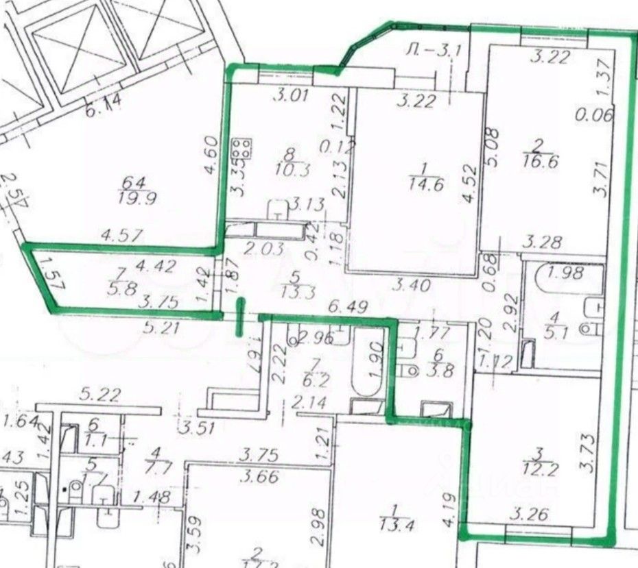 -3 изолированные правильной формы комнаты 14,6 + 12,2 + 16,6 кв. м,