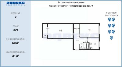 Приятный микрорайон, утопает в зелени, центр в 15 мин на авто. Инфраструктура, о которой можно только мечтать - всевозможные магазины, Пятерочка в соседнем доме, пекарня с ароматным кофе и горячими обедами в 50м от дома, общественный транспорт во все районы города, до набережной Невы 1,5км, до Большеохтинского моста 10 мин на авто. В 15 мин пешком Полюстровский рынок, пешком поликлинника, школа, гимназия.