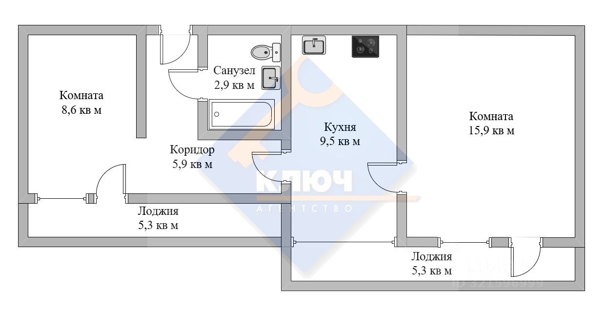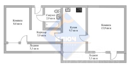 Жилая площадь составляет 24.5 квадратных метра, кухня 9.5 квадратных метров, прихожая 5,9 квадратных метра, две большие застекленные лоджии. Квартира в хорошем состоянии.