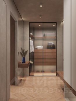 - прихожая с полноценной гардеробной, подсветками и парящим зеркалом, видеодомофон