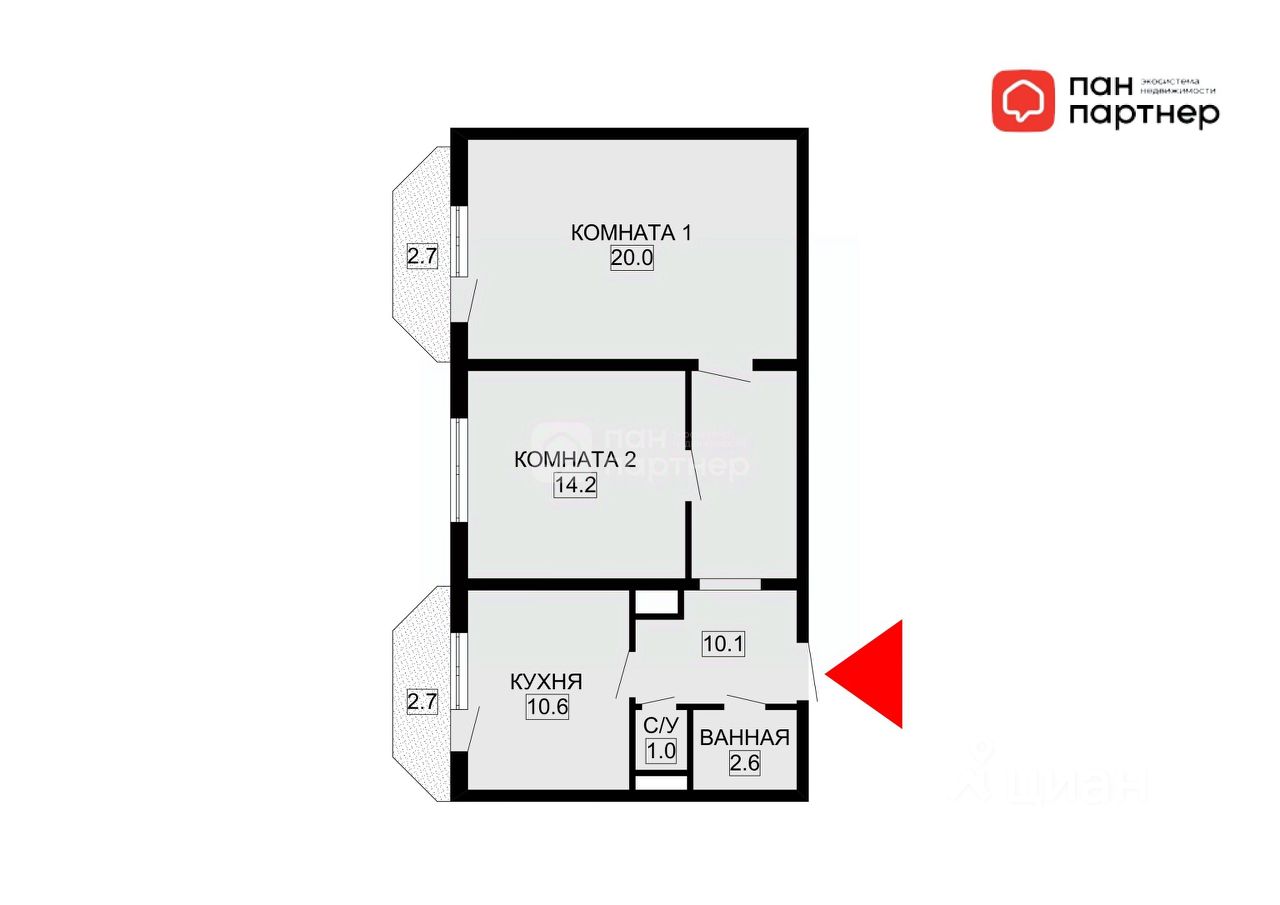 Жилая площадь составляет 34,2 квадратных метра, а кухня занимает 10,6 квадратных метров, предоставляя достаточно пространства для кулинарного творчества и семейных ужинов.