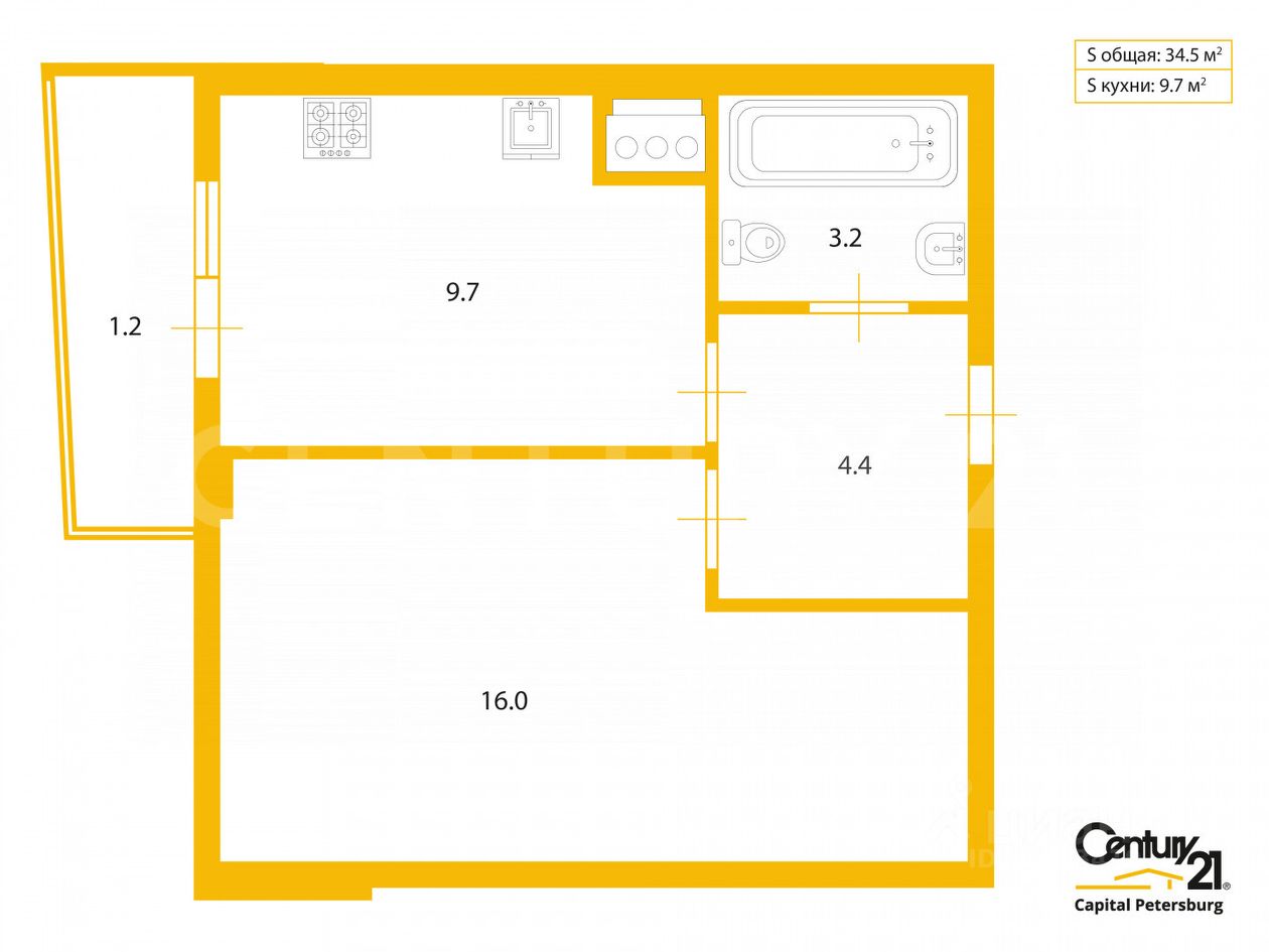 - Просторная 34,5 квадратный метра, жилая площадь 16 кв.м с возможностью установить гардеробную либо кровать, балкон 4 кв.м и кухня 9,7 кв.м, где можно насладиться приготовлением пищи и уютными семейными ужинами.