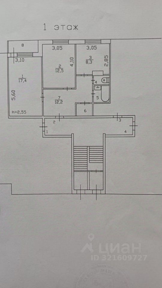 Жилая площадь 29.9 м2, кухня 8.3 кв.м. Комнаты: 17.4/12.5 м2, комнаты изолированные. В квартире выполнен косметический ремонт, стеклопакеты, батареи чугунные, балкон застеклен.