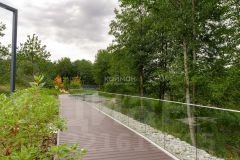 Собственная набережная и променад с видом на воду, ухоженный ландшафт, удобные лежаки, эко-тропа с выходом в лесопарк.