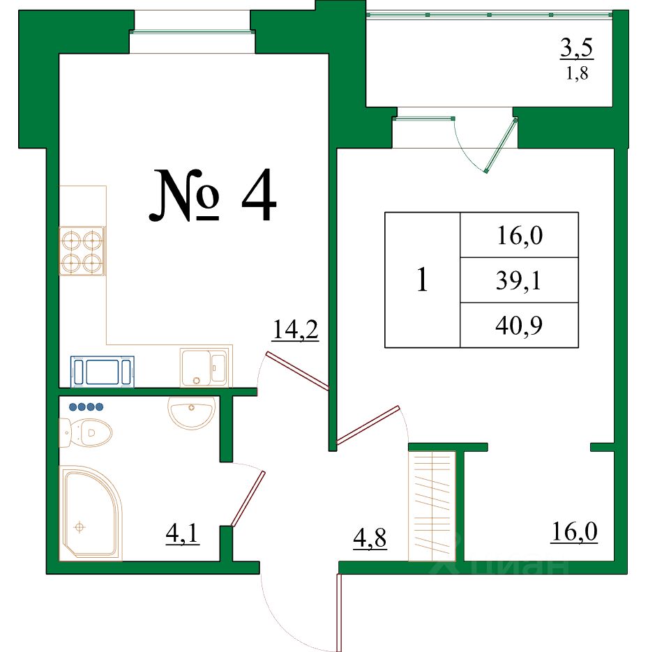 Продаётся 1-комнатная квартира в сданном доме (Красносельское шоссе, 4Ак2 (Корпус 3)), срок сдачи: III-кв. 2025, общей площадью 40.9 кв.м., на 6 этаже.