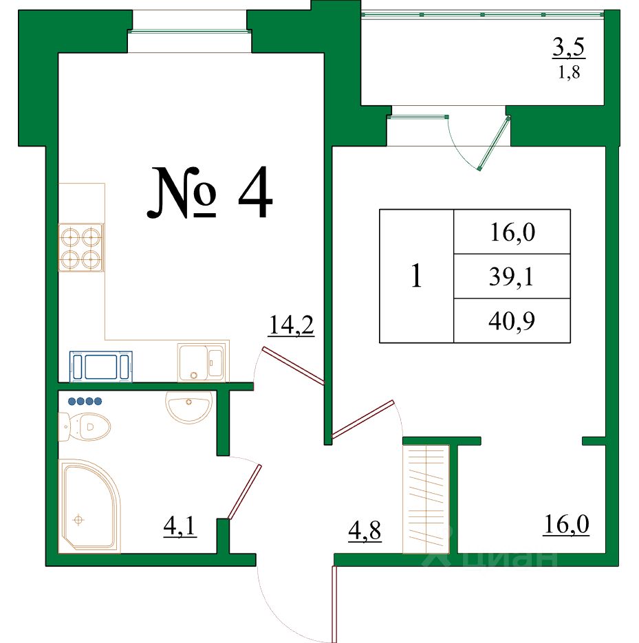 Продаётся 1-комнатная квартира в сданном доме (Красносельское шоссе, 4Ак2 (Корпус 3)), срок сдачи: III-кв. 2025, общей площадью 40.9 кв.м., на 8 этаже.