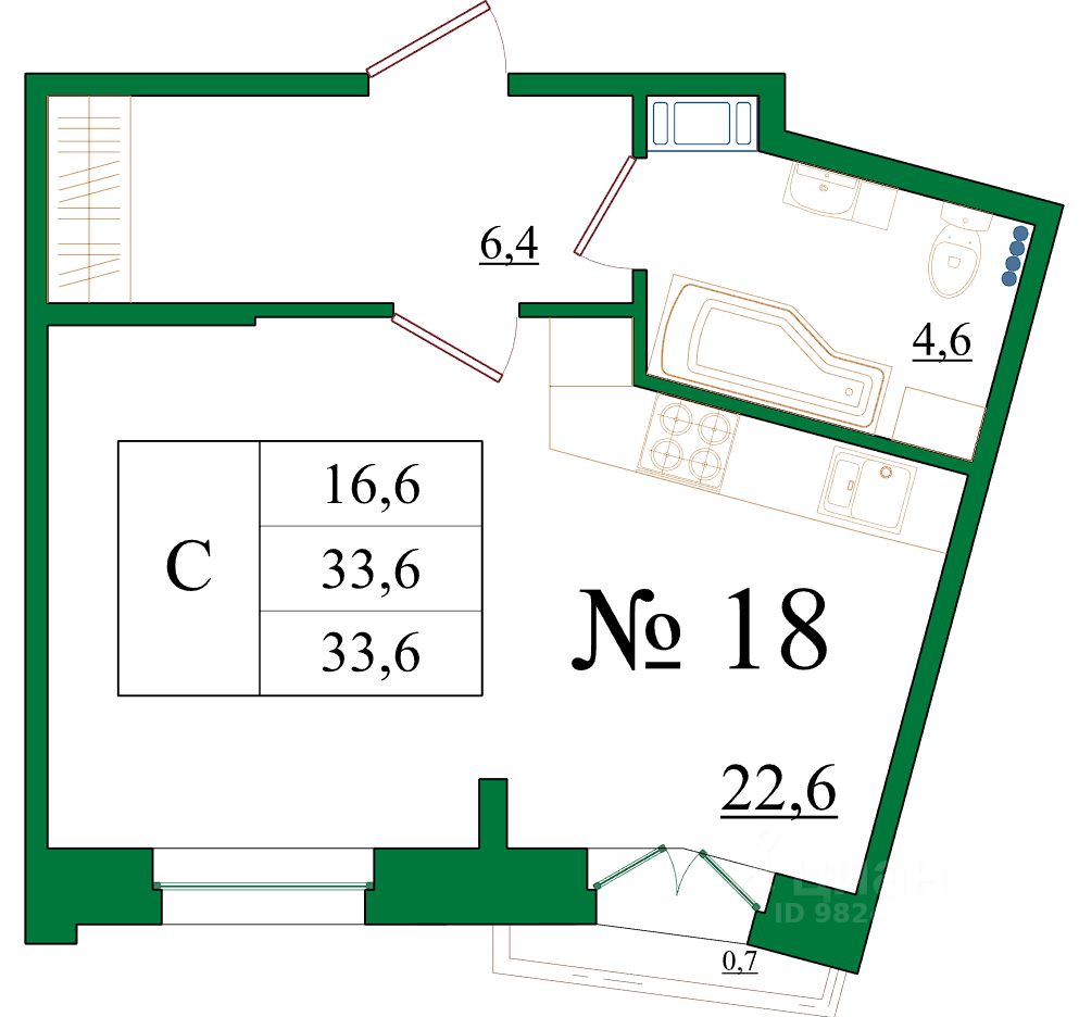 Продаётся студия в сданном доме (Корпус 1), срок сдачи: IV-кв. 2024, общей площадью 35.2 кв.м., на 3 этаже.