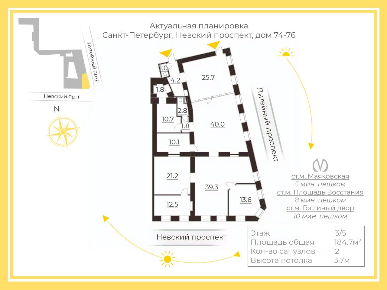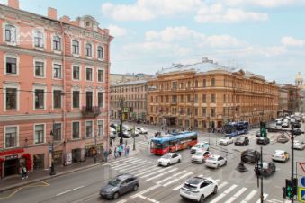 Квартира очень светлая, в ней 11 окон, которые выходят на Невский проспект и на Литейный пр-т.