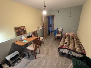 Проживание в комнате 13 метров с балконом. В 3 комнатной квартире сделана перепланировка в 2 (двухкомнатную) квартиру. Много места в местах общего пользования.