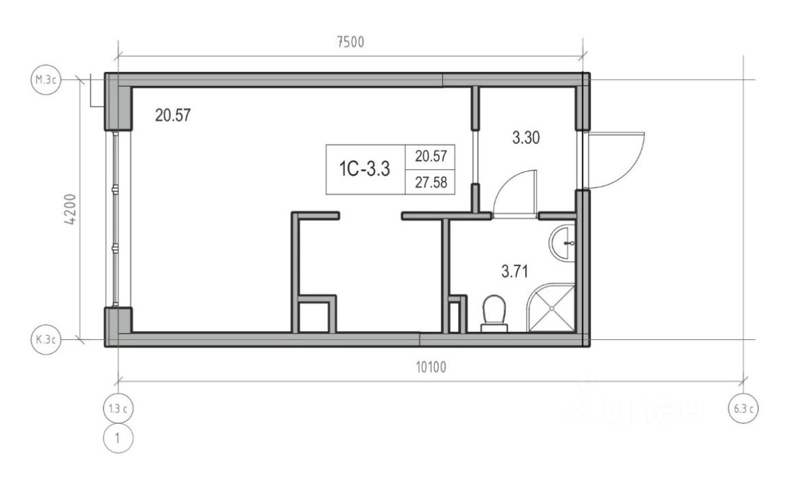 • площадь — 27,6 м² - оптимальная площадь для комфортного проживания;