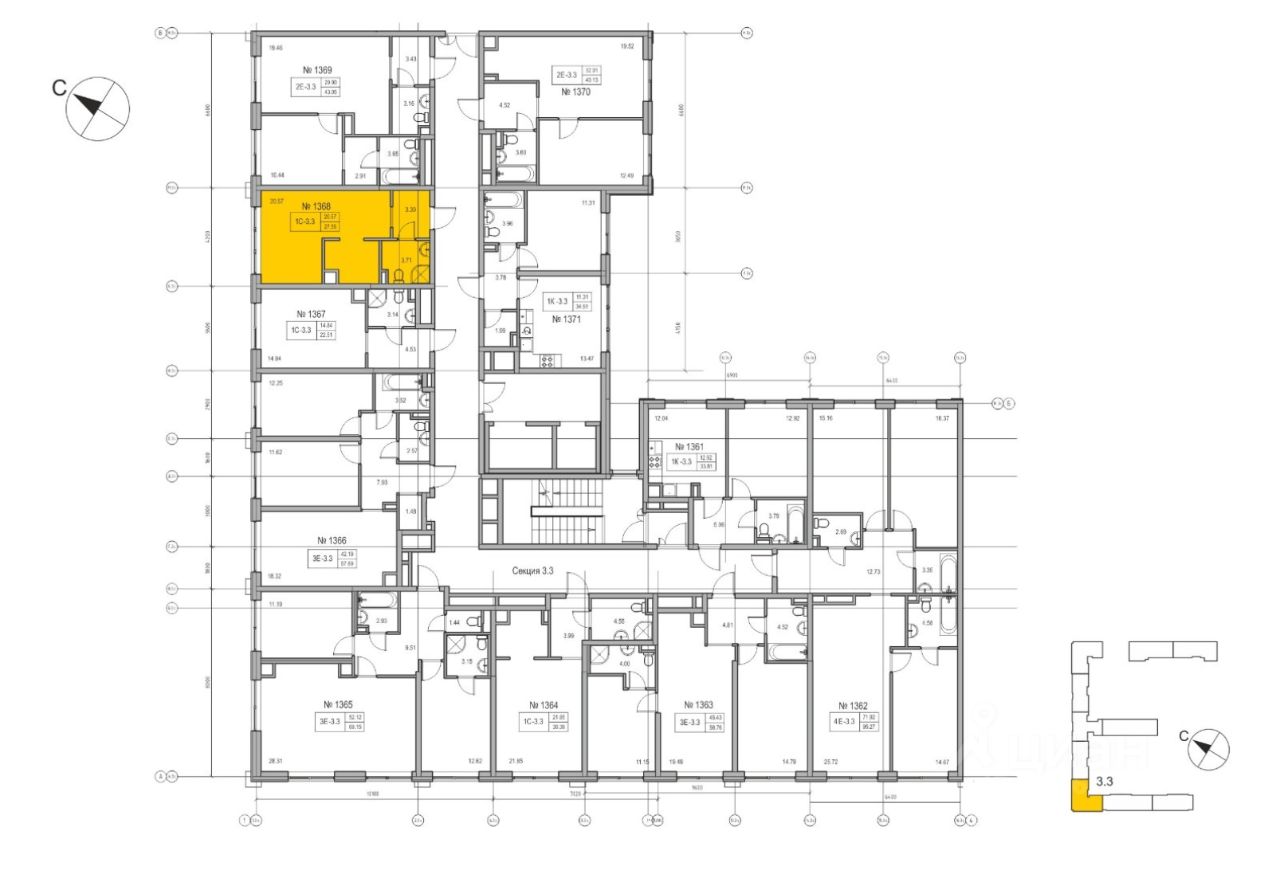 • в секции 3.3 в отличии от других мало квартир на этаже см. планировку