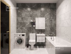 Квартира продается с улучшенной чистовой отделкой от застройщика коллекции Nord Line. Установлены белоснежные межкомнатные двери. В комнатах  кварц-виниловый ламинат темно-серого оттенка, обои под покраску, натяжные потолки, современные белые высокие плинтусы. В ванной комнате - крупноформатная плитка и система теплый пол. Установлена сантехника от ведущих российских и европейских брендов, подвесная тумба с умывальником и зеркало. Квартира двухсторонняя - много света и воздуха в течение всего дня.