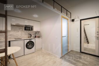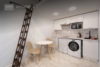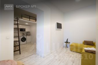 Уютная квартира полностью готова для комфортного проживания. Планировка включает в себя просторную кухню, оснащенную всей необходимой мебелью и  бытовой техникой, оборудован санузел,  а так же гостиную, окна которой выходят в тихий зеленый внутренний двор. Над кухней расположен второй ярус, переоборудованный в дополнительное спальное место.