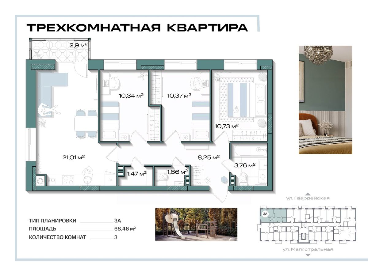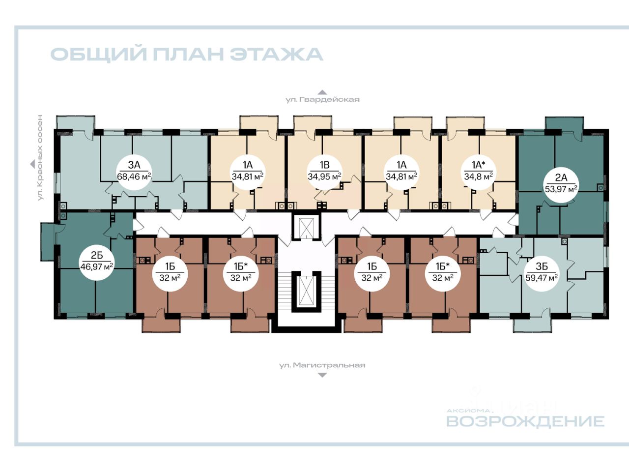 Продаётся 3-комнатная квартира в строящемся доме (Дом 6), срок сдачи: I-кв. 2028, общей площадью 68.46 кв.м., на 7 этаже. Новый клубный дом "Аксиома.Возрождение" от застройщика "Аксиома" расположен по адресу: г. Кировск, ул. Красных Сосен, 6