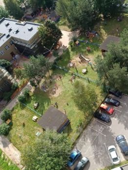 Во дворе есть детские и спортивные площадки.