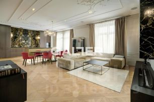 Шедевр авторского дизайна в самом сердце Петербурга. 4-комнатный пентхаус: кухня-гостиная 60 м², потолки 3 м, большие окна, био-камин, домашний кинотеатр Marantz.