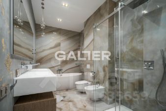 Интерьер — авторский проект, вошедший в Top-20 ADD Awards 2021. В отделке использованы натуральный мрамор и древесина ценных пород; вся мебель — по индивидуальному заказу от итальянских брендов; техника — премиального уровня.