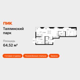 Продаётся 2-комн. квартира площадью 64,52 кв.м на 8 этаже 12 этажного дома (Корпус 4.1, Секция 2) проекта ПИК Таллинский парк. Светлый просторный подъезд на уровне земли, функциональная планировка, большие окна, c отделкой.