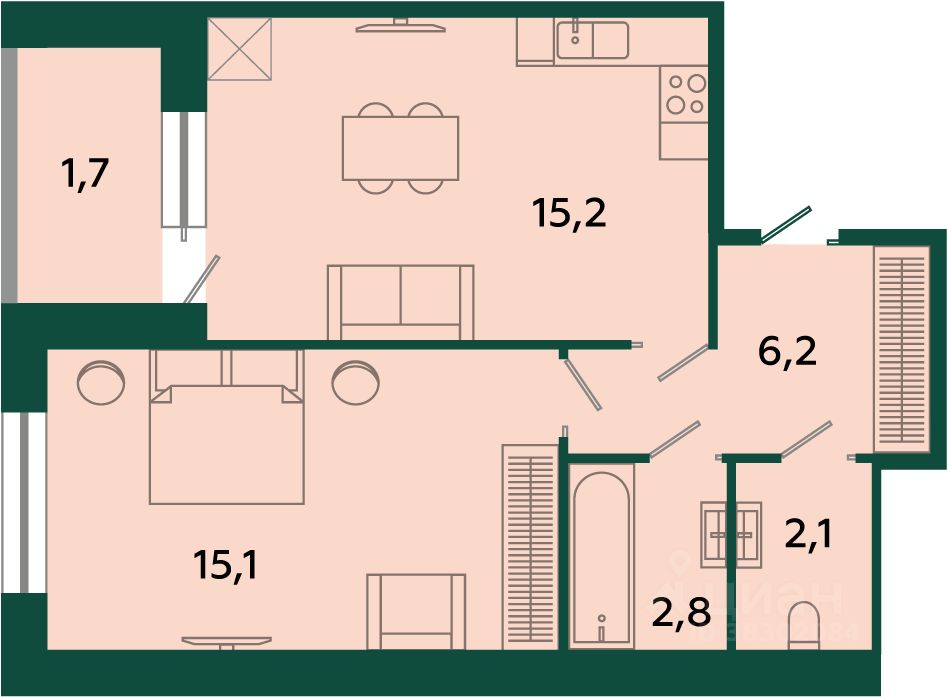 Продаётся 1-комнатная квартира в сданном доме (Корпус 1), срок сдачи: I-кв. 2025, общей площадью 43.1 кв.м., на 2 этаже. ЖК "Графская слобода в Песках" - жилой комплекс, расположившийся в Ломоносовском районе Ленинградской области, в д. Пески на ул. Солдата Власова, д. 1.