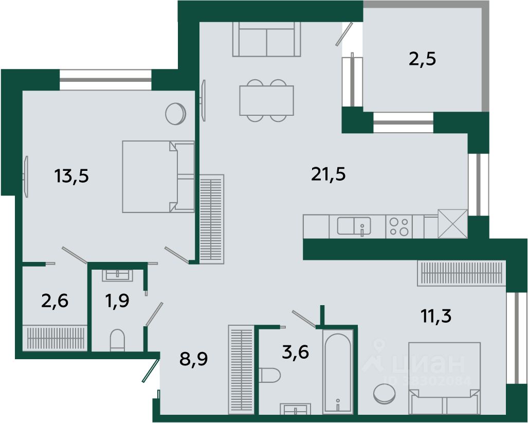 Продаётся 2-комнатная квартира в сданном доме (Корпус 1), срок сдачи: I-кв. 2025, общей площадью 65.8 кв.м., на 1 этаже. ЖК "Графская слобода в Песках" - жилой комплекс, расположившийся в Ломоносовском районе Ленинградской области, в д. Пески на ул. Солдата Власова, д. 1.