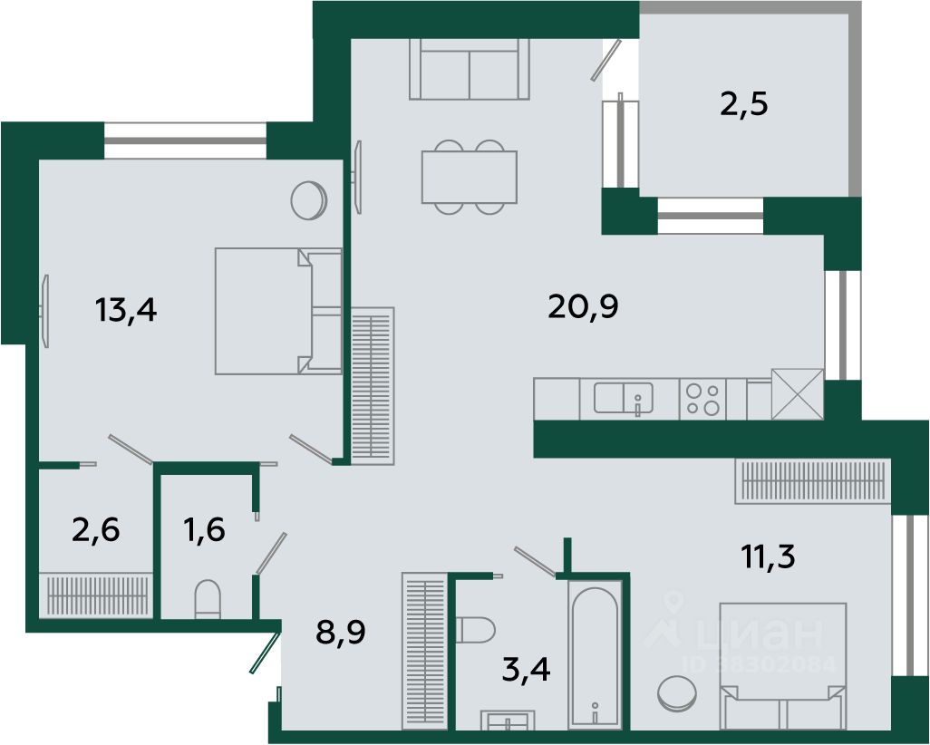 Продаётся 2-комнатная квартира в сданном доме (Корпус 1), срок сдачи: I-кв. 2025, общей площадью 64.6 кв.м., на 2 этаже. ЖК "Графская слобода в Песках" - жилой комплекс, расположившийся в Ломоносовском районе Ленинградской области, в д. Пески на ул. Солдата Власова, д. 1.