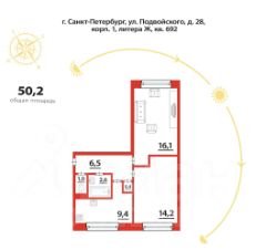 Общая площадь квартиры 50,2 кв. м., жилая площадь 30,30 кв. м., кухня 9, 40 кв.м., раздельный сан. узел. Расположена на первом этаже 9-этажного дома. В квартире поменяны окна на стеклопакеты. В каждой комнате и в кухне есть окна, что делает квартиру очень светлой. У дома есть председатель, который очень внимательно за ним следит и оперативно реагирует на все обращения жильцов.