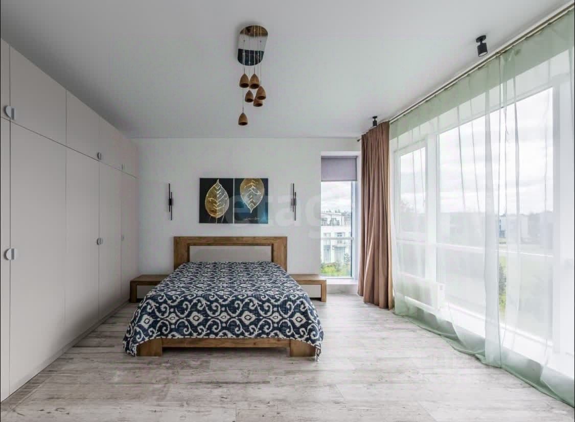 • Спальная комната 31 м² с просторной гардеробной. Полы и межкомнатные двери выполнены из дуба.